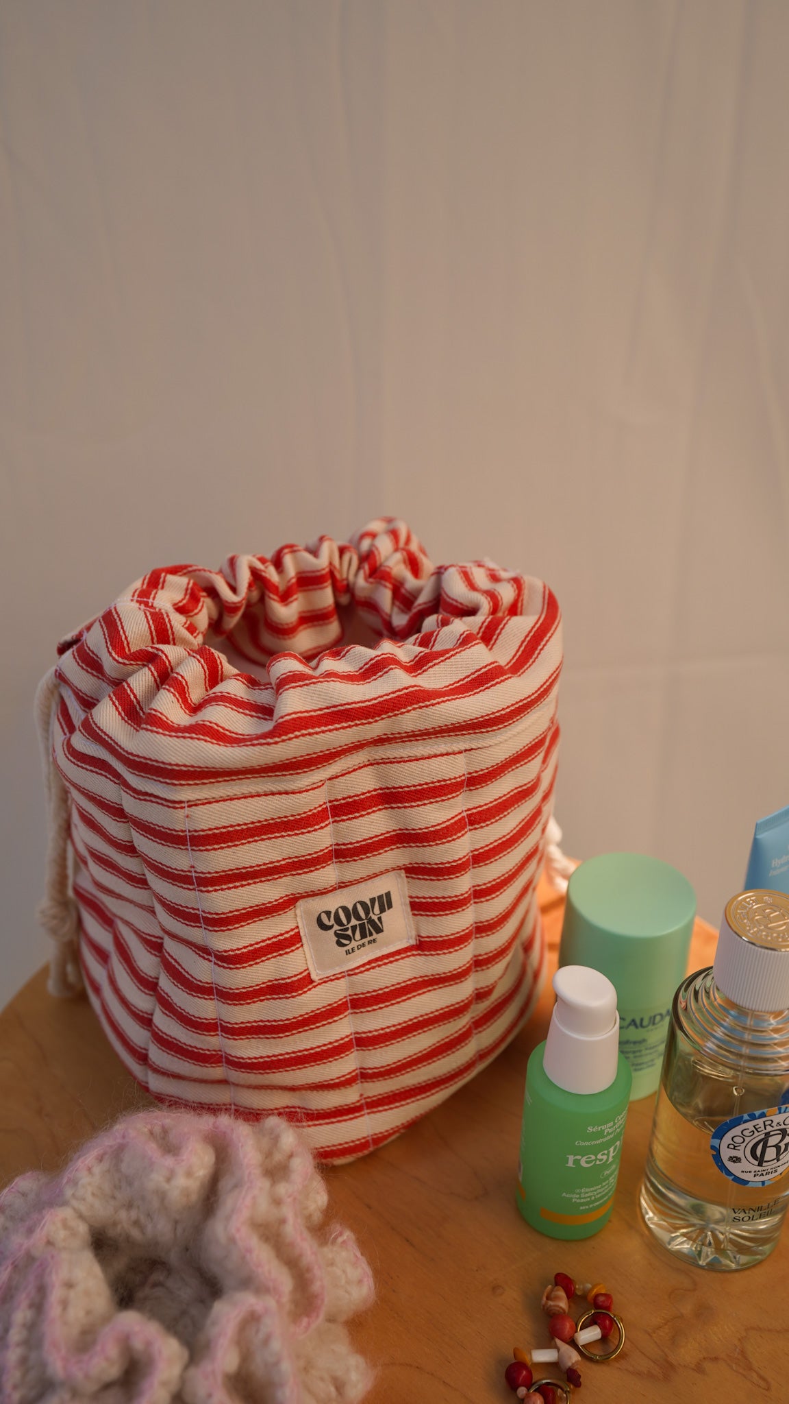 ✹ Doublé en voile de coton blanc, il garde vos essentiels bien rangés, que ce soit vos affaires de toilettes, accessoires ou bien projets créatifs.
